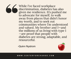 But I also want to end on this: while I’ve faced discrimination, diabetes has also given me resilience. It’s pushed me to advocate for myself, to walk away from places that didn’t honor my worth, and to seek out communities where I’m understood. My brother and I—and the millions of us living with type 1—are proof that people with diabetes are strong, adaptable, and resourceful.